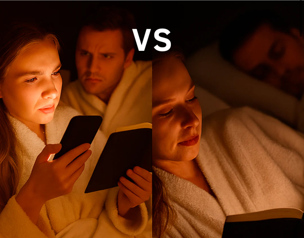 Stop using your phone light! As it's bad for your eyes... Discover the perfect lighting solution for your reading, ensuring comfort and clarity while you explore new worlds. Elevate your nighttime routine with ease and elegance.